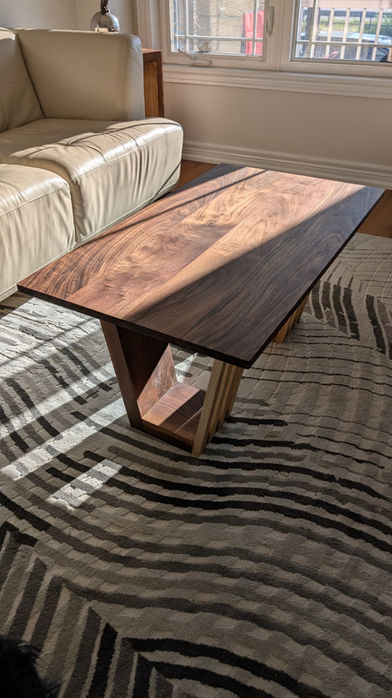 Coffee table crafted from ash wood, stained in a rich deep brown and finished with a long-lasting clear coat for durability
